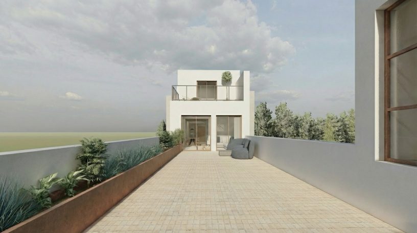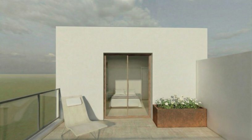 Dos terrazas privadas de generosas dimensiones amplían la experiencia residencial, permitiendo disfrutar del exterior en un entorno urbano tranquilo y peatonal.